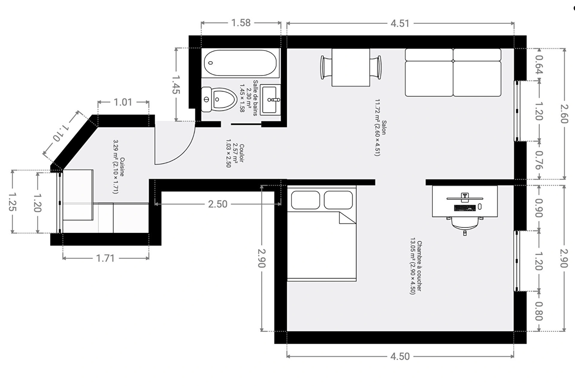 L'appartement séduit par sa luminosité, sa configuration fonctionnelle sans perte d'espace et son fort potentiel.